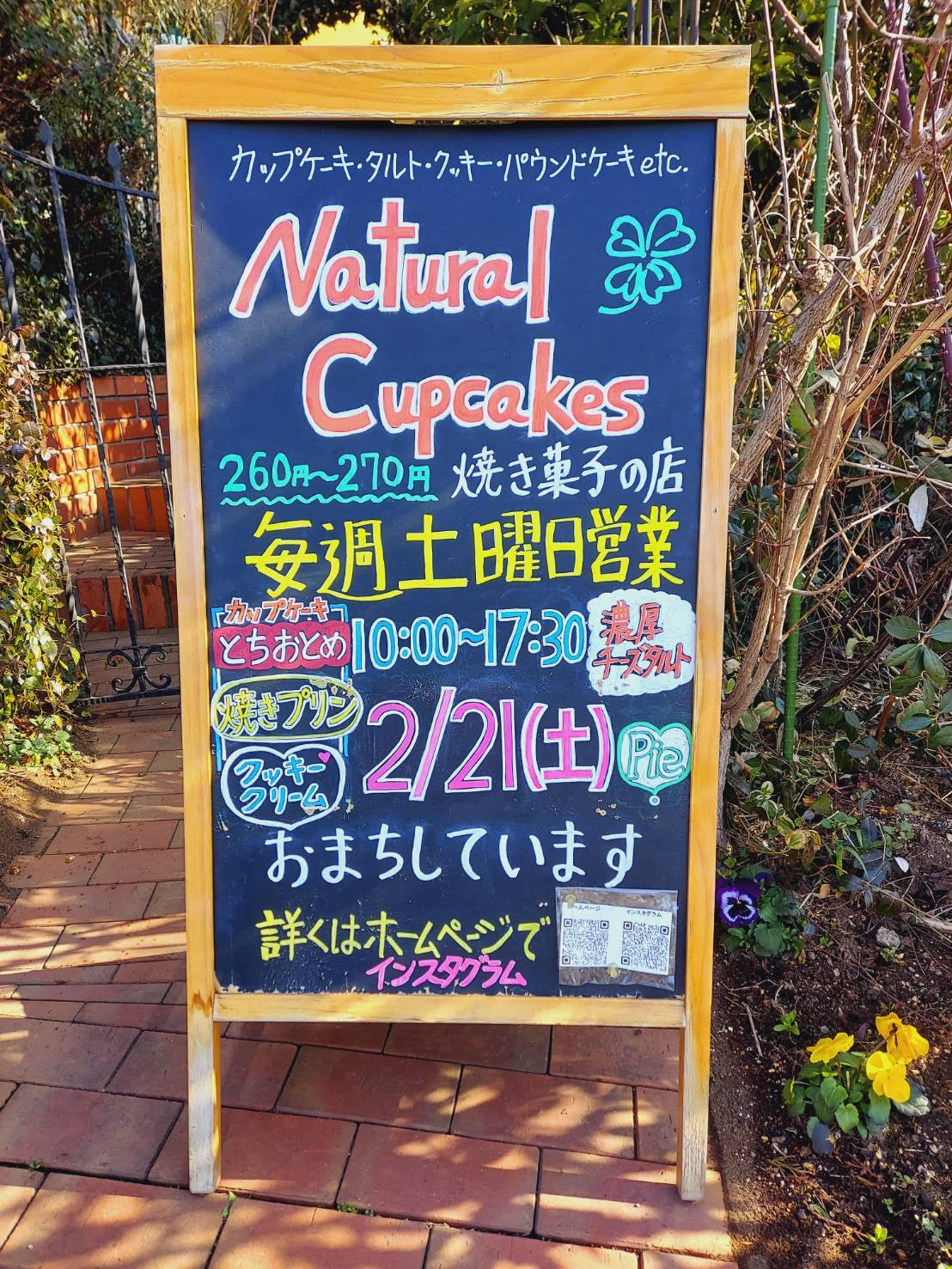 つくば市研究学園7丁目に誕生したカップ入りの食べやすい焼き菓子の専門店です。カップケーキ、タルト、スコーン、パウンドケーキ、クッキーなどナチュラルなフルーツ素材やバターをたっぷり使った手作りの洋菓子をお手ごろな価格で販売する自然派の小さな洋菓子店です。みなさまのご来店をお待ちしております。毎週土曜日の営業となります。次回は2月21日(土)の営業となります。(2月は春時間10:00-17:30の営業となります。なお、2月28日は都合によりお休みとさせていただきます。)チョコレートクリームカップケーキ、ベイクド生チョコケーキ、抹茶カップケーキ、とちおとめカップケーキ、焼きプリンカップケーキやチェリータルト、クルミキャラメルタルト、濃厚なチーズタルト他でお待ちする予定です。紅白サザンカやハルサザンカ笑顔の花が咲き甘夏みかんの実がなる庭でみなさまのご来店をお待ちしています。